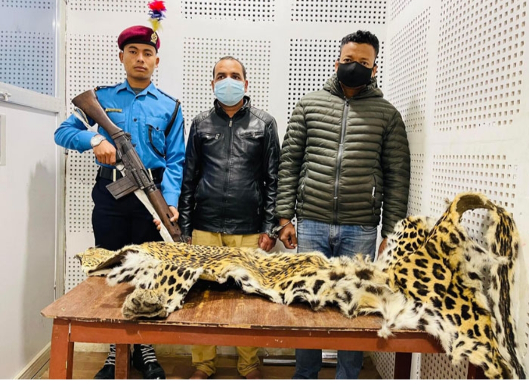 त्यस्तै पक्राउ पर्नेहरुमा तुलसीपुर उपमहानगरपालिका ५ रानीजरुवा निवासी ३१ वर्षिय महेन्द्र खड्का र राजपुर गाउँपालिका ६ निवासी ३८ वर्षिय सूर्य बहादुर चौधरी रहेका छन् । रा ३ प २६६ नम्बरको मोटरसाइकलमा लुकाई छिपाई ल्याउदै गरेको आंशकाका आधारमा चेकजाँच गर्ने क्रममा उनीहरुको साथबाट टाउकोदेखि पुच्छरसम्म ८ फिट २ इन्च लम्बाई र १ फिट ८ ईन्च चौडाई भएको छाला र विभिन्न कम्पनीका मोबाइल सेट ३ थान बरामद गरेको प्रहरीले बताएको छ ।उनीहरुलाई पक्राउ गरी थप अनुसन्धान भैरहेको प्रहरीको जनाएको छ ।