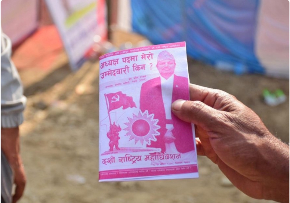 त्यस्तै बन्दसत्रको हलभित्र प्रवेश गर्न लामबद्ध भएकाहरुलाई रावलका कार्यकर्ताहरुले पर्चा वितरण गरेका थिए । ‘मेरो उम्मेदवारी किन’ लेखिएको भीम रावलको पर्चामा रावलले अध्यक्षमा उम्मेदवारी दिनुपर्नाका कारणबारे उल्लेख छ ।