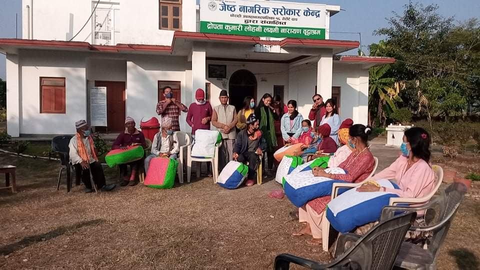 घोराही १६ की सामाजिक अभियन्ता नेपालीले तेरौटैस्थित जेष्ठ नागरिक सरोकार केन्द्रमा बस्दै आउनुभएका सहयोगापेक्षी जेष्ठ नागरिकहरुलाई आईतबार एक समारोहका बीच जाडोबाट बचाउन फाइबर सिरक, खाद्यान्न, फलफूल तथा अन्य श्रृंगारका सामान उपलब्ध गराउनुभएको छ । केन्द्रमा बस्दै आउनुभएका वृद्ध आमाबुवाहरुको अवस्थालाई मध्येनजर गर्दै आर्थिक सहयोग जुटाएर केही दिने सोँच बनाउँदै थालेको अभियानमा छोटो समयमा देश तथा विदेशबाट अपेक्षित रकम संकलन भएपछि १८ जनालाई जाडोबाट जोगाउन फाइबर सिरकसहित अन्य आवश्यक सामग्री सहयोग गरिएको नेपालीले बताउनु भयो । जीवनको उत्तरार्धमा परिवार र आफन्तको स्याहार पाउनु पर्ने बेलामा वृद्धाश्रममा बस्नु पर्ने पीडादायी अवस्था देखेर आफुलाई केही भएपनि सहयोग गर्नुपर्छ भन्ने मनमा लागेरै अभियानको थालनी गरेको सहयोग हस्तान्तरण कार्यक्रमका अवसरमा नेपालीले बताउनुभयो ।