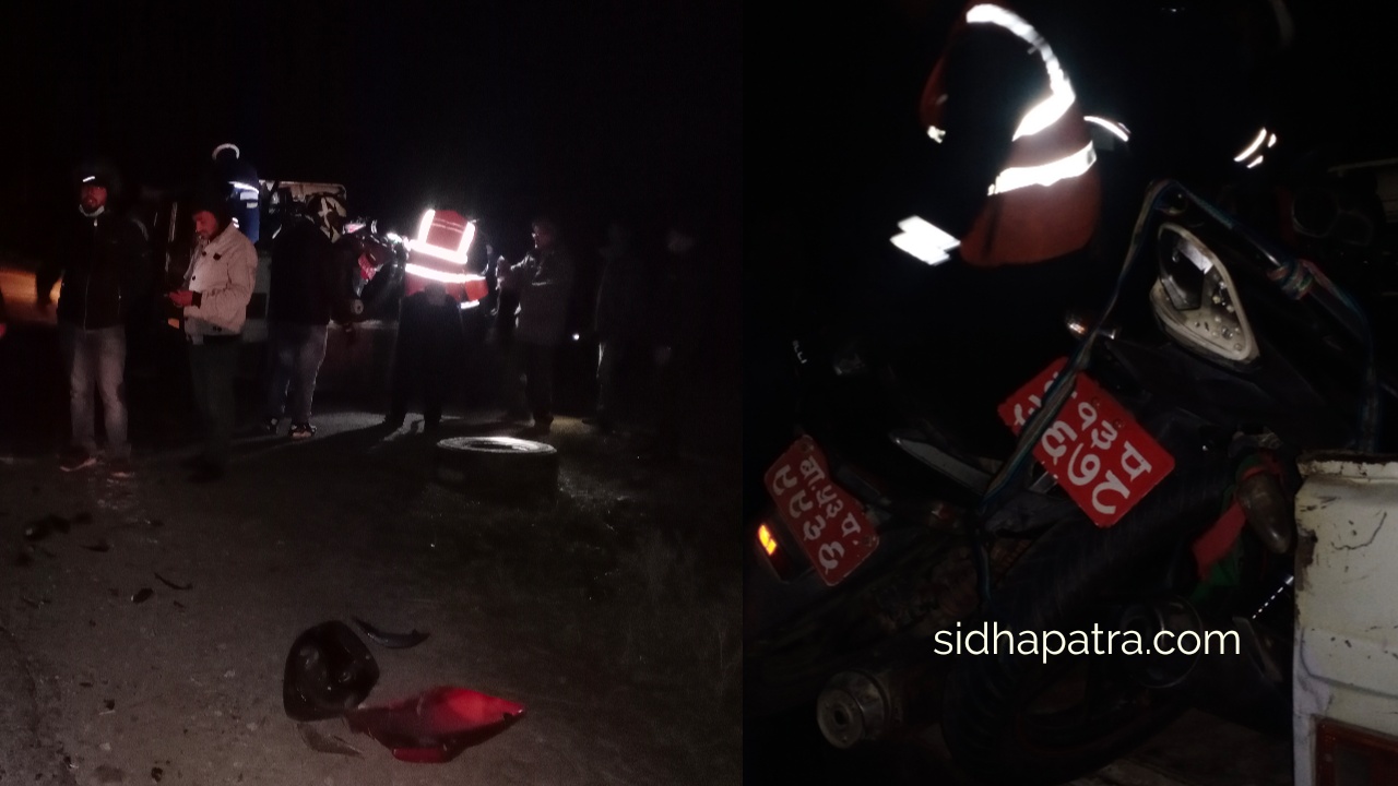 उनिहरु सवार रहेको बा ५३ प ९९३६ र लु १३ प ३६७८ नम्बरको मोटरसाइकल बेलुका ६ बजेर ४५ मिनेटको समयमा एक आपसमा ठोकिँदा योगि र चौधरी गम्भीर घाइते भएका हुन् ।