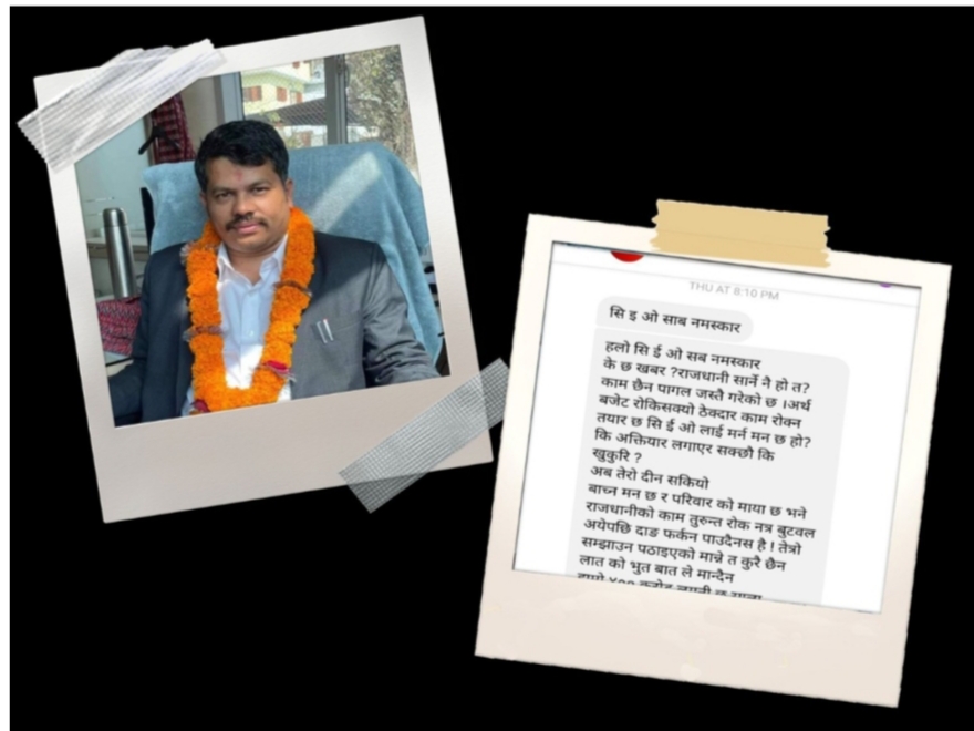 उक्त म्यासेजमा अख्तियार लगाएर या ज्यान मारेर सिध्याउने धम्की दिइएको छ । राजधानीमा भौतिक पूर्वाधार निर्माणको काम तत्काल रोक्न पनि धम्की दिइएको छ । म्यासेजमा लेखिएको छ– ‘नत्र बुटवल आएपछि दाङ फर्कन पाउँदैनस् ।’