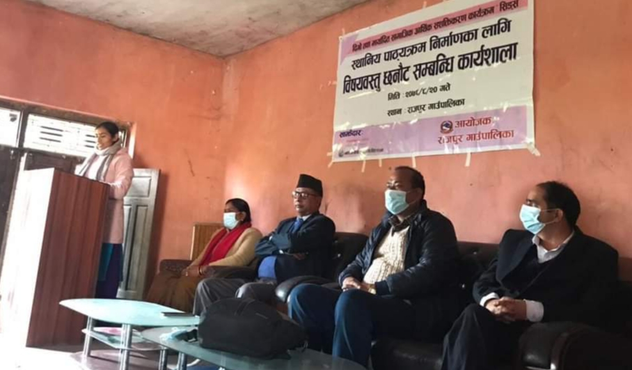 दाङ । स्थानिय पाठ्यक्रम निर्माण सम्बन्धी कार्यशाला १ दिने गोष्ठी आज राजपुर गाउँपालिकाममा पालिकाका अध्यक्ष लोकराज केसीको अध्यक्षता तथा शिक्षा बिकाश समन्वय समिति दाङका प्रमुख देबमणी चौधरीको प्रमुख आतिथ्यमा सम्पन्न भएको छ ।