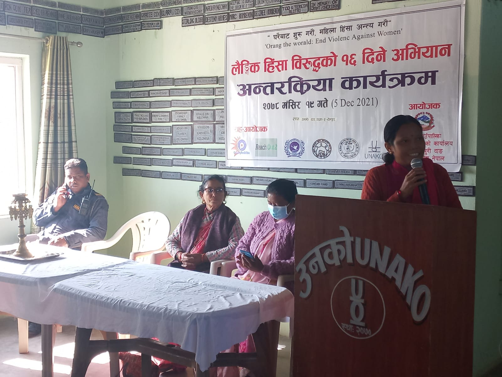 दाङ । घरबाट शुरु गरौं, महिला हिंसा अन्त्य गरौं भन्ने मुलनाराका साथ लैगिंक हिंसा बिरुद्धको १६ दिने अभियान अन्तरगत गढवा गाउँपालिका वडा नम्बर ५, चैनपुरमा अन्तरक्रिया कार्यक्रम सम्पन्न भएको छ ।