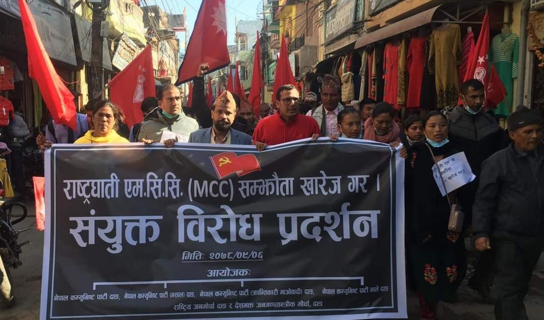 दाङ । अमेरिकी सहयोग मिलेनियम च्यालेन्ज कर्पोरेशन (एमसीसी)का विरुद्धमा ६ कम्युनिष्ट राजनीतिक दलहरुले संयुक्त रुपमा विरोध प्रदर्शन गरेका छन् ।
