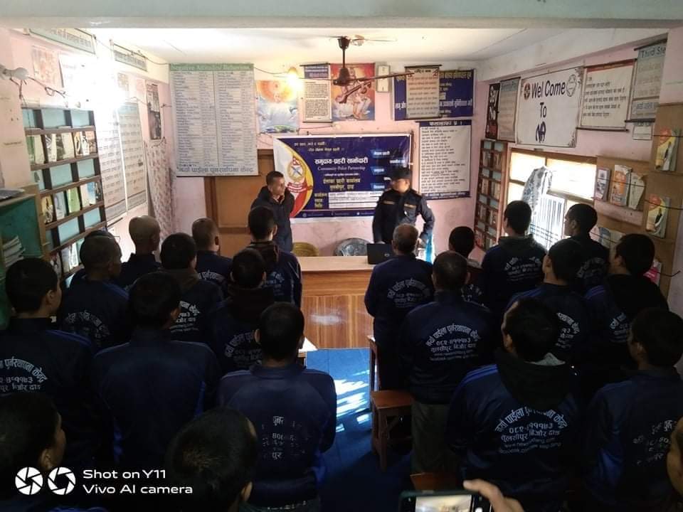 शुक्रबार आज सुधार गृहमा रहेका ४५ जना उपचाररत व्यक्तिहरुसंग अन्तरक्रिया गर्दै डिएसपी अर्यालले लागुपदार्थ दुव्र्यसन, यसका कारण,असर र सधार गर्न सकिने विषयमा जानकारी दिनुु भएको थियो । सुधार गृहमा किन आईपुुगे र अव आफु कसरी परिवर्तन हुने भन्ने विषयमा व्यक्तिले स्वमुल्याङकन गर्न आग्रह गर्नु भएको थियो ।