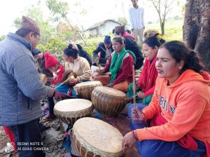 यो अभियानका लागि घरेलु कार्यालयकै खर्चमा सैनामैना–१ रुपन्देहीबाट अनिल पहाडी प्रशिक्षकको रुपमा उपस्थित हुनु भएको छ । बाद्यबादन र संगित क्षेत्रमा स्नातकोत्तर गर्दै थेसीसको तयारीमा रहेका अनिलले रुपन्देहीको तिलोत्तमामा पञ्चैबाजा बजाउने महिलाहरुको टिम तयार गरेको बताउनुभयो । पञ्चैबाजा जस्तो लोपोन्मुख कला संस्कृति प्रति गैह्र दलितको आकर्षण किन बढीरहेको छ र नेपाली समाजमा यसको प्रभाव के छ भन्ने बिषयमा उहाँले प्रशिक्षणकै माध्यमबाट सोधपत्र तयार गर्न थालेको बताउनुभयो । तालिम ४५ दिनको हो तर एक महिनामै महिलाहरुलाई टे«ण्ड गराउने उहाँको योजना रहेको छ । गरेपछि असंभब केहि छैन,देशका धेरै स्थानमा बाजा बजाउने महिलाहरुको टिम तयार भएको छ–उहाँले भन्नु भयो ।
