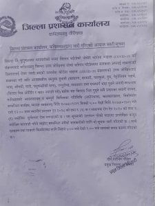 जिल्ला प्रशासनले आज २९ गते साँझ ५ बजेदेखि जेष्ठ ५ गते राती १२ बजेसम्म लागू हुने गरी जिल्लालाई शील गर्ने निर्णय सार्बजनिक गरेको छ । आज २९ गते साँझ ५ बजेदेखि जेष्ठ ५ गते राती १२ बजेसम्मलागु हुनेछ ।