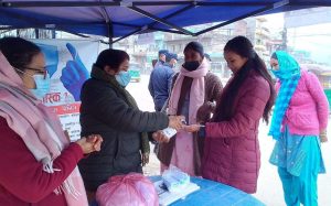 जानकारी दिनुभयो । मंगलवारदेखी स्टल स्थापना गरेर एक हप्ते अभियान सुरु गरिएको उहाँले जानकारी दिनुभयो । मास्क लगाउन अटेरी गर्नेहरुलाई काउन्सीलिङ गरेर मास्क प्रयोग गर्न अनुरोध गरिएको र उहाँहहरुले पनि मास्कको प्रयोगबारे सचेत भएपछि प्रयोग गर्ने गरेको मनोविमर्शकर्ता लक्ष्मी ढकालले जानकारी दिनुभयो ।