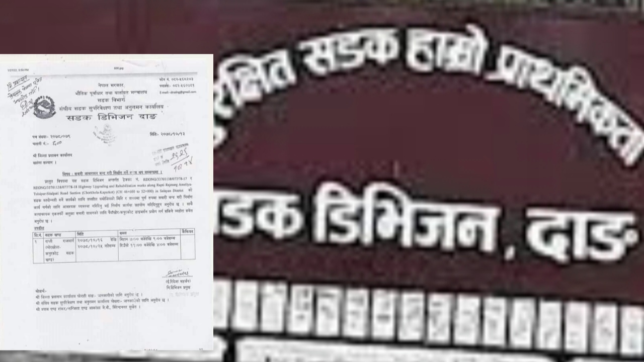 दाङ । पर्सि आईतबारदेखी राप्ती राजमार्ग दैनिक ७ घण्टा बन्द हुने भएको छ । राप्ति राजमार्ग अन्तरगत चोरखोलादेखी कपुरकोटसम्मको साघुरो सडकलाई फराकिलो पार्ने काम गर्नुपर्ने भएपछि १० दिन सम्म दैनिक ७ घण्टा सडक बन्द गरिने सडक डिभिजन कार्यालय दाङका ईन्जिनियर रिकेश महर्जनले जानकारी दिनुभएको छ ।