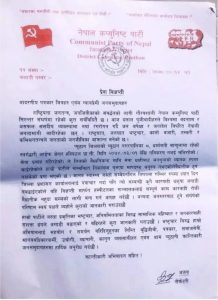 प्यूठान जिल्ला सेक्रेटरी अजयद्धारा हस्ताक्षरीत विज्ञप्तिमा प्यूठान नगरपालिका ८ धर्मावति बाग्दुलामा सञ्चालन रहेको स्वर्गद्धारी लाइफ केयर हस्पिटल प्राली २०७४ असार १ गतेदेखि नविकरण नभइ सञ्चालनमा रहदै आइरहेको जनगुनासो पनि धेरै नै आउने गरेको विज्ञप्तिमा उल्लेख गरिएको छ । साथै हस्पिटलको बारेमा सम्बिन्धित निकायमा बुझ्दा मापडण्ड अनुरुप नभएकाले बैधानिक हुन नसकेको प्रष्ट भएको विज्ञप्तिमा भनिएको छ ।