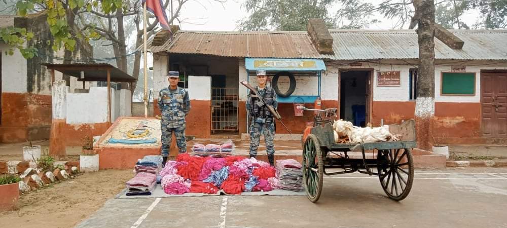 बाँके । सशस्त्र प्रहरी जमुनाहा बिओपीका सशस्त्र प्रहरी निरीक्षक जीवनलाल बुढाको कमान्डमा खटिएको सशस्त्र प्रहरी टोलीले बाँके नेपालगन्ज १५ सीमा नाका जमुनाहबाट आइतबार दिउँसो लाखौं रुपैयाँ बराबरको अवैध सामाग्री पक्राउ सशस्त्र प्रहरी जमुनाह बियोपीका सशस्त्र प्रहरी निरीक्षक जिबन लाल बुढाले जानकारी दिनुभएको छ ।