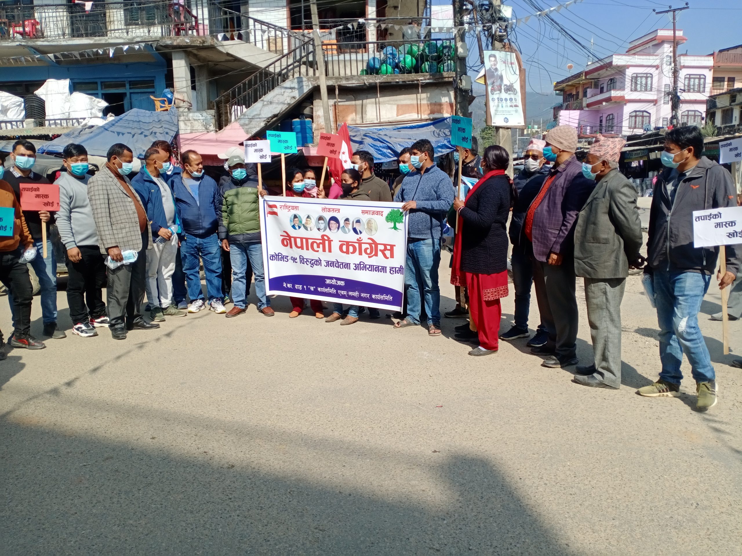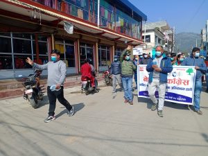 दाङ । नेपाली कांग्रेस दाङ क्षेत्र नम्बर १ प्रदेश ख र नेपाली कांग्रेस लमही नगर समितिको संयुक्त अभियानमा लमही बजार क्षेत्रमा कोभिड विरुद्धको जनचेतना अभियान अन्तर्गत निशुल्क मास्क वितरण गरिएको छ । विश्वव्यापी रुपमा फैलिरहेको कोरोनाबाट बच्नका लागि अनिवार्य मास्क लगाउनु पर्ने अभियानमा संलग्न नेताहरुको भनाई छ।