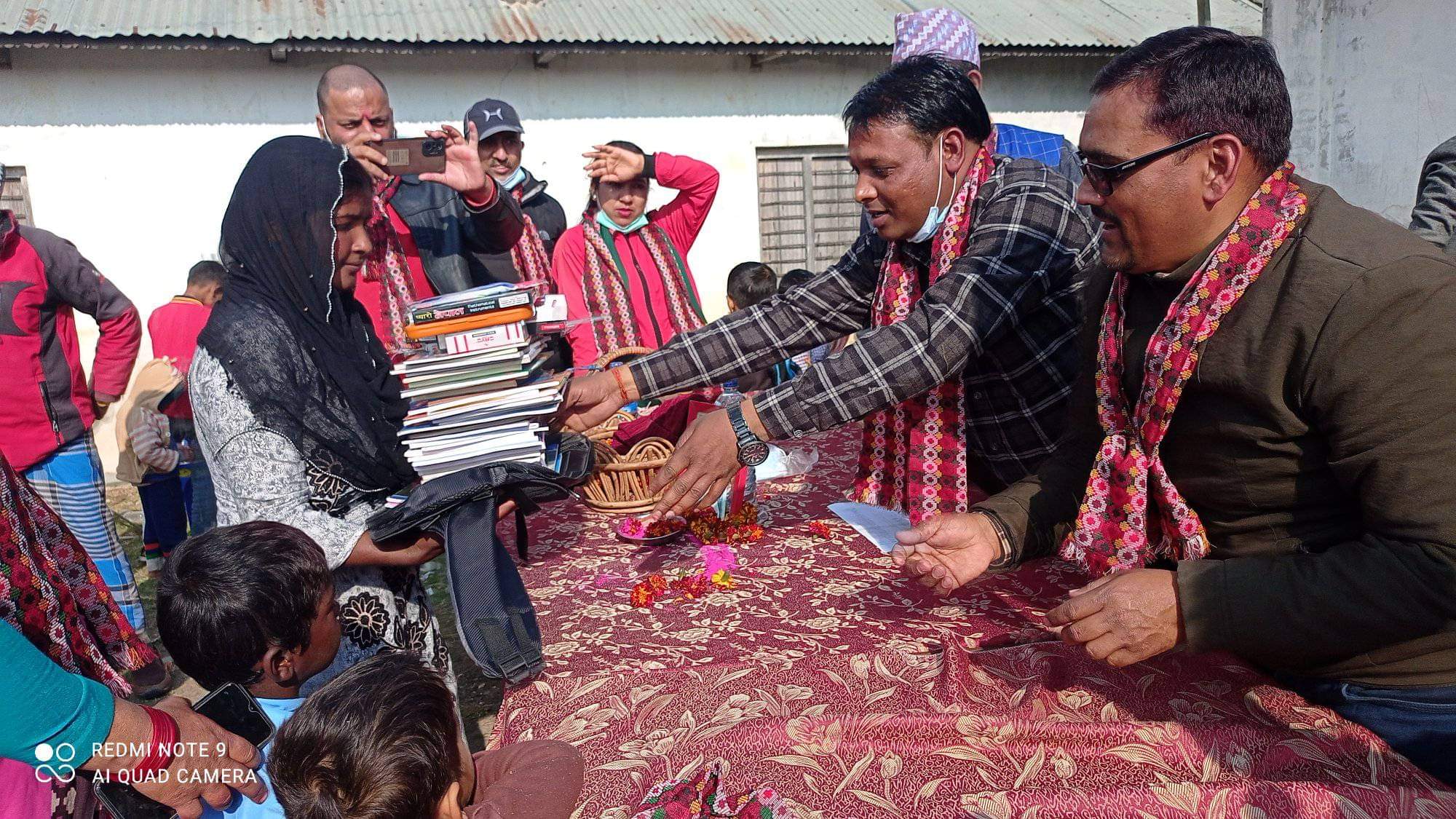 प्रसंग हो, नेपाल पुस्तक तथा स्टेशनरी ब्यवसायी महासंघ देउखुरी क्षेत्रीय समितिले नबौं राष्ट्रिय पुस्तक दिवस तथा बसन्त पञ्चमीको अवसर पारेर आयोजना गरेको शैक्षिक सामाग्री वितरण कार्यक्रमको । आइतवार देउखुरीको गढवा ४ स्थित कालिका प्राथमिक बिद्यालयका सबै बिद्यार्थीहरुलाई नेपाल पुस्तक तथा स्टेशनरी ब्यवसायी महासंघ देउखुरीले बिद्यार्थीहरुले बोक्नै नसक्ने गरि झण्डै २ लाख १ हजार ७ सय १० बराबरका शैक्षिक सामाग्री एक कार्यक्रमका बिच हस्तान्तरण गरेको छ ।