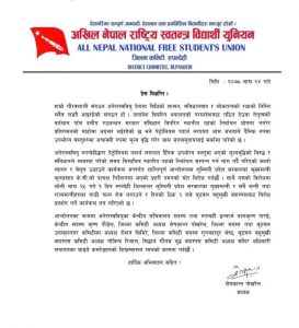 पेट्रोलियम पदार्थको मुल्यबृद्धीका बिरुद्ध तथा स्थानीय तहकाे निर्वाचनकाे मिति ताेक्नु पर्ने माग गर्दै अनेरास्ववियुले कालो बेलुन र ब्यानर समेत प्रदर्शन गरेका थिए।झडपमा परी अनेरास्ववियु केन्द्रीय सचिवालय सदस्य बालकृष्ण पाण्डे, अनेरास्ववियु जिल्ला अध्यक्ष शेषकान्त पाेखरेल, बुटवल नगर कमिटी अध्यक्ष राेशन घिमिरेलगायत घाइते भएको अनेरास्ववियु केन्द्रीय उपाध्यक्ष यम पाण्डेले जानकारी दिए ।