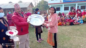 यसैगरी कुर्सिदौड तर्फ प्रथम ग्रुपबाट शान्ती चौधरी प्रथम,रेखा कुमारी चौधरी द्धितिय,मंजु चौधरी तृतिय र धनमाया चौधरीले सान्त्वना स्थान प्राप्त गर्नुभएको छ । दोश्रो ग्रुपमा सुनिता कुमारी चौधरी प्रथम,रोशना चौधरी द्धितिय,सुनिता चौधरी तृतिय र मिना चौधरीले सान्त्वना स्थान हाँसिल गर्नुभएको थियो । उत्कृष्ट हुनेहरुलाई कुक्कर,पराद र थाली पुरस्कार प्रदान गरिएको सिपि नेपालका कर्मचारी हमराज शर्माले जानकारी दिनुभयो । पुरस्कार वितरण कार्यक्रमको संचालन महिला संयोजक सरीता चौधरीले गर्नुभएको थियो ।