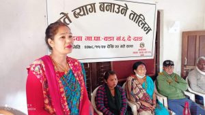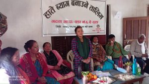 कार्यक्रममा बोल्दै बिशिष्ट अतिथी वडानं. ६ का वडा अध्यक्ष बालचन्द्र ठकूरी हमालले बिपन्न र सिमान्तकृत वर्गका महिलाहरुलाई सिप सिकाएर स्वरोजगार बनाउन गाउँपालिका र वडाले हातेब्याग बनाउने सिप सिकाएको बताउनुभयो ।