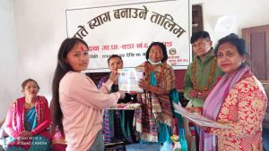 कार्यक्रममा उपाध्यक्ष शान्ती चौधरीले महिलाहरुको सिप बिकास गरी रोजगारी प्रबर्धन गर्न ब्याग बनाउने तालिम संचालन गरिएको बताउनुभयो ।