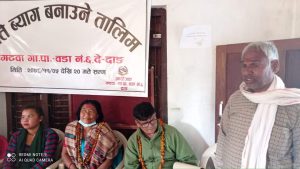 कार्यक्रममा वडा सदस्यहरु मनिषा चौधरी,श्रीराम यादव,कौशिल्या बिश्वकर्मा र सहभागिको तर्फबाट गिता चौधरी लगायतले बोल्नु भएको थियो । चन्द्रकला पाण्डेयको स्वागत मन्तब्यबाट सुरु भएको समापन कार्यक्रमको संचालन श्रृजना घिमिरे रजौरेले गर्नुभएको थियो ।
