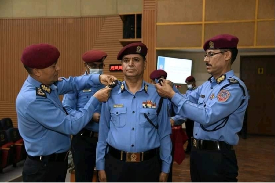 काठमाडौं । प्रहरी महानिरीक्षक (आईजिपी) शैलेश थापा क्षेत्रीले हालै पदोन्नति भएका ३ जना प्रहरी अतिरिक्त महानिरीक्षकहरूलाई प्रहरी प्रधान कार्यालयमा बिहीबार आयोजित एक समारोहबीच दर्ज्यानी चिन्हद्वारा सुशोभन गरे ।