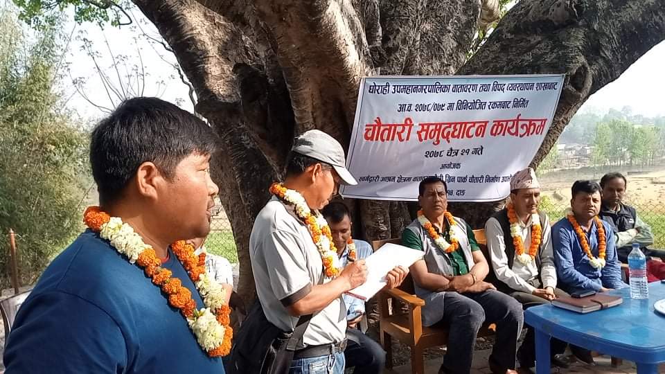 दाङ । स्वर्गद्वारी आश्रम क्षेत्रमा वातावरणमैत्री ग्रिन पार्क चाैतारी निर्माण गरि उदघाटन गरिएको छ । घाेराही उपमहानगरपालिका वातावरण तथा विपद व्यवस्थापन शाखाबाट आर्थिक वर्ष २०७८-०७९ मा विनियोजित ५ लाख बाट ग्रिन पार्क निर्माण गरि आज उदघाटन गरिएको हाे । वडा नम्बर १४ का वडा अध्यक्ष शक्तिराम डाँगीकाे अध्यक्षता तथा नगर प्रमुख नरुलाल चाैधरीकाे प्रमुख आतिथ्यतामा साे ग्रिन पार्ककाे उदघाटन गरिएको हाे ।
