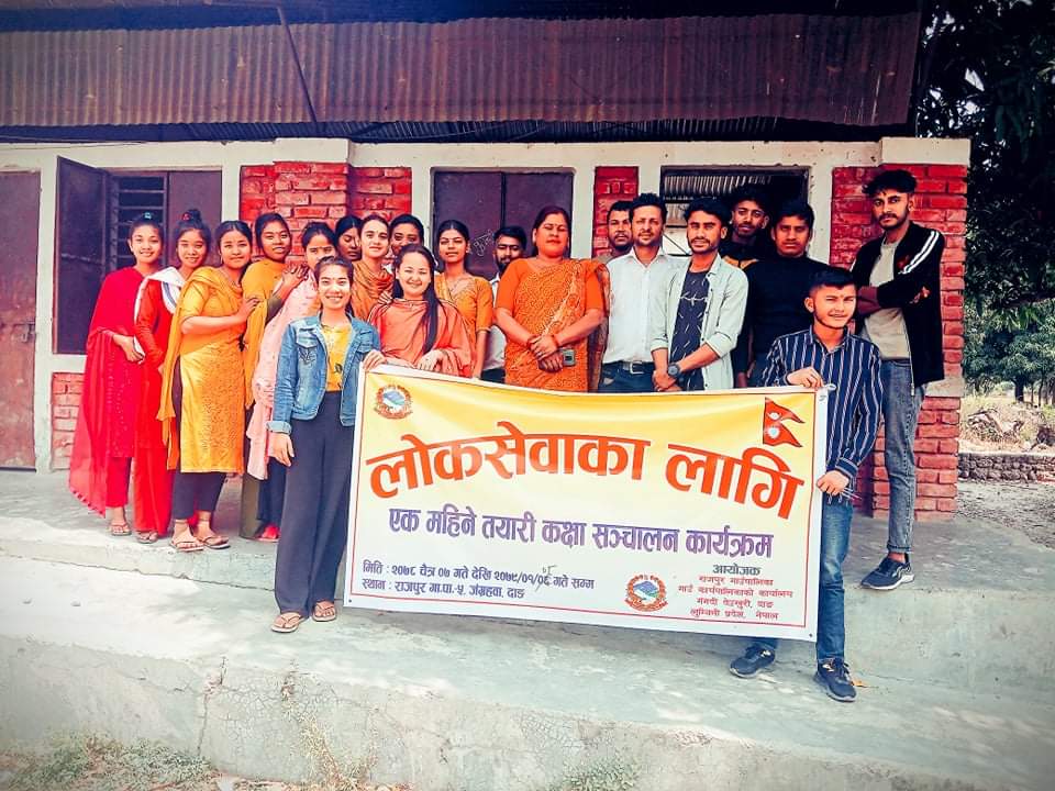 राजपुर गाउँपालिका स्थित विभिन्न कार्यालयका कार्यरत कर्मचारीहरुबाट कक्षा सञ्चालन गरिएको थियो । लोकसेवा तयारी कक्षामा गाउँपालिकाका सात वटै वडाबाट महिला र पुरुष गरि ३१ जना यूवा विद्यार्थी भाइबहिनीहरुको सहभागिता रहको थियो। उक्त कार्यक्रम +२ सकाएका विद्यार्थीहरुलाई लक्षित गरेर आयोजना गरेको राजपुर गाउँपालिकाका सूचना प्रविधि अधिकृत शरद रेग्मीले जानकारी दिनु भयो ।