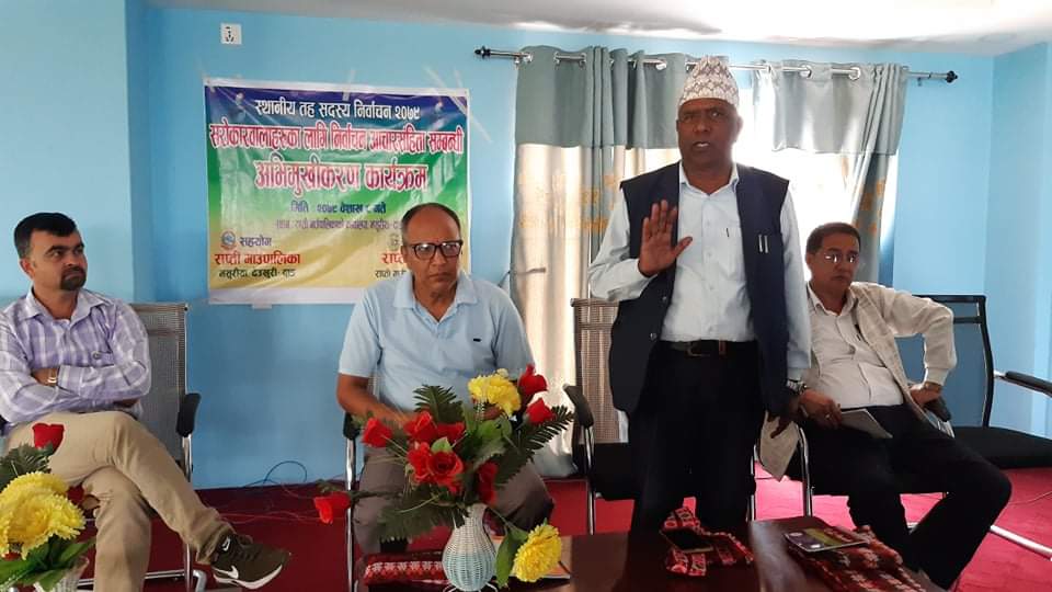 राप्ती प्रेस मञ्चको आयोजना एवम् राप्ती गाउँपालिकाको सहयोगमा बिहिबार देउखुरीको मसुरियामा आयोजित स्थानीयतह निर्वाचन आचारसंहित सम्बन्धी एक दिने अभिमुखीकरण कार्यक्रममा बोल्दै उनले यस्तो बताएका हुन् ।