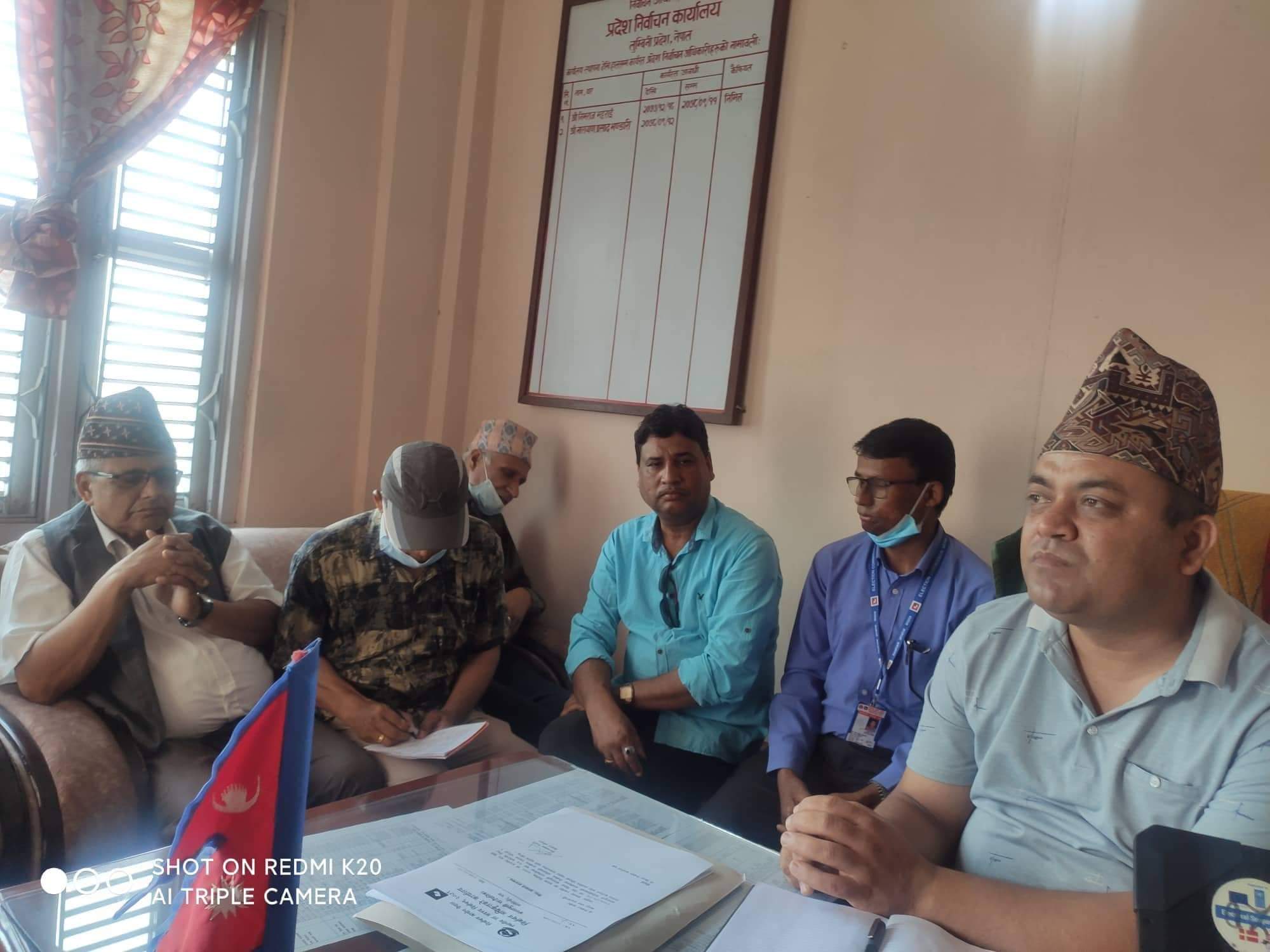 समाजका संयोजक केबी मसालको नेतृत्वमा जिल्ला निर्वाचन अधिकारीको कार्यालय पुगेको टोलीले स्थानीय तहको निर्वाचन स्वस्थ, स्वच्छ, भयरहित निष्पक्ष तरिकाले सम्पन्न गर्न निर्वाचन आयोगको नीति अनुसार अघि बढ्न गरेको आग्रहमा निर्वाचन अधिकारी नारायणप्रसाद भण्डारीले हाल निर्वाचन लक्षित थुप्रै काम निर्वाध रुपमा स्वतन्त्र ढंगले अघि बढेको जानकारी गराउनुभएको छ ।