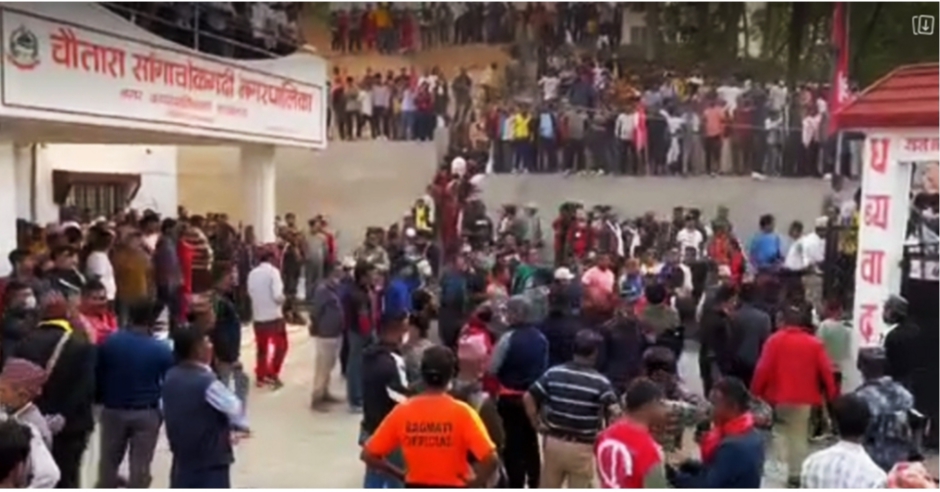 चौतारा साँगाचोकगढी वडा नम्बर १ र १४ को वडाध्यक्ष नेकपा एकीकृत समाजवादीलाई दिएपछि माओवादी कार्यकर्ता आक्रोशित भएर तोडफोडमा उत्रिएका हुन् । माओवादीकै दुई पक्षबीच झडपका क्रममा निर्वाचन कार्यालयका झ्यालको सिसाहरु फुटेका छन् ।