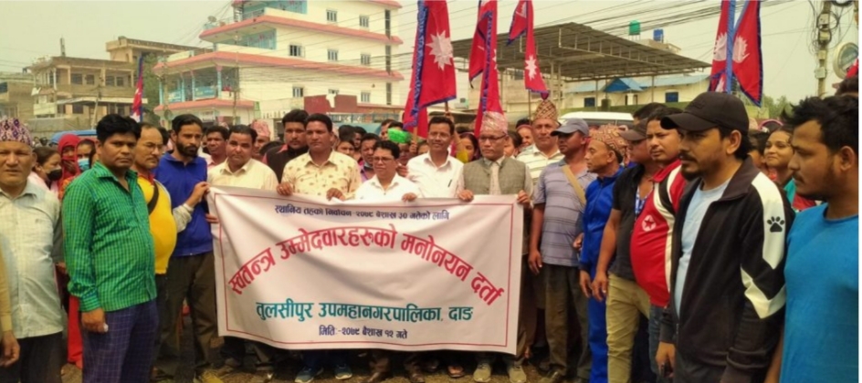 यस्तै उहाँले पनि स्वतन्त्रबाट उमेदवारी दर्ता गराएका छन् । यस्तैगरी विप्लव पाटी निकट मिनप्रसाद ढकाल (अरबिन्द)ले तुलसीपुर १४ को वडा अध्यक्ष पदमा स्वतन्त्रबाट उमेदवारी दिएका छन् । उनी तुलसीपुरका व्यापारी समेत रहेका छन् ।
