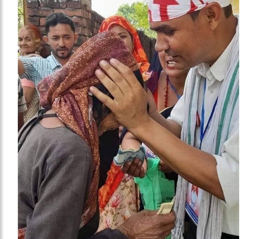 दाङ । लमही नगरपालिका वडा नम्बर १ को वडा अध्यक्षका माओवादी उम्मेदवार घनश्याम खनालले चुनावी घरदैलोका क्रममा वृद्धावृद्धालाई रकम दिएको तस्बिर सार्वजनिक भएको छ । तर उम्मेदवार खनालले भने आफूले भाेट मागेको तर पैसा नदिएको बताएका छन् ।