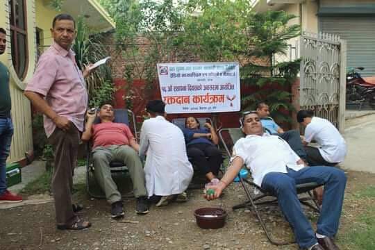 यस्तै,रेडियाे कर्मचारी तर्फ छवि पुरी,कमल वली, बाबुराम पाण्डे,चन्द्रप्रकाश नेपाली,शालिकराम चाैधरी,सुनिल परियार, अस्मिता परियारले रक्तदान गर्नुभयो । कार्यक्रममा देवराज रिजाल,आशिष खड्का,कविता डिसी,महेश खनाल, हुकुमा डिसी, माेहन पाण्डेय,सुशील अधिकारी, मुक्तिप्रसाद न्याैपाने, निरज गिरी,पूर्ण कार्की,हेमन्त चाैधरी, आकाश परियार,शैलेश अधिकारी,सुरेश कुमार पट्वा क्षेत्री र सुरज बन्जाडेले पनि रक्तदान गर्नुभएकाे अध्यक्ष वैद्यले जानकारी दिनुभयो ।