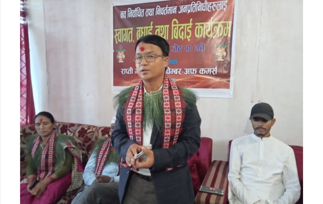 चेम्बरका अध्यक्ष कुमार अधिकारीको अध्यक्षतामा भएको कार्यक्रममा राप्ती गाउँपालिकाका निर्वतमान अध्यक्ष नुमानन्द सुवेदी, नवनिर्वाचित उपाध्यक्ष कमलापती चाैधरी, सिसहनियाँ उद्योग वाणिज्य संघका महासचिव प्रकाश आचार्य, प्रगति नगर शहरी खानेपानी उपभोक्ता तथा सरसफाई संस्थाका अध्यक्ष शान्तराज शर्मा, देउखुरी बचत तथा ऋण सहकारी संस्थाका अध्यक्ष शिवध्वज मल्ल, जग्गादाता बसन्तकुमार रावत, समाजसेवी ओमनाथ बञ्जाडे लगायतका वक्ताहरूले शुभकामना तथा बधाई मन्तव्य व्यक्त गरेका थिए ।