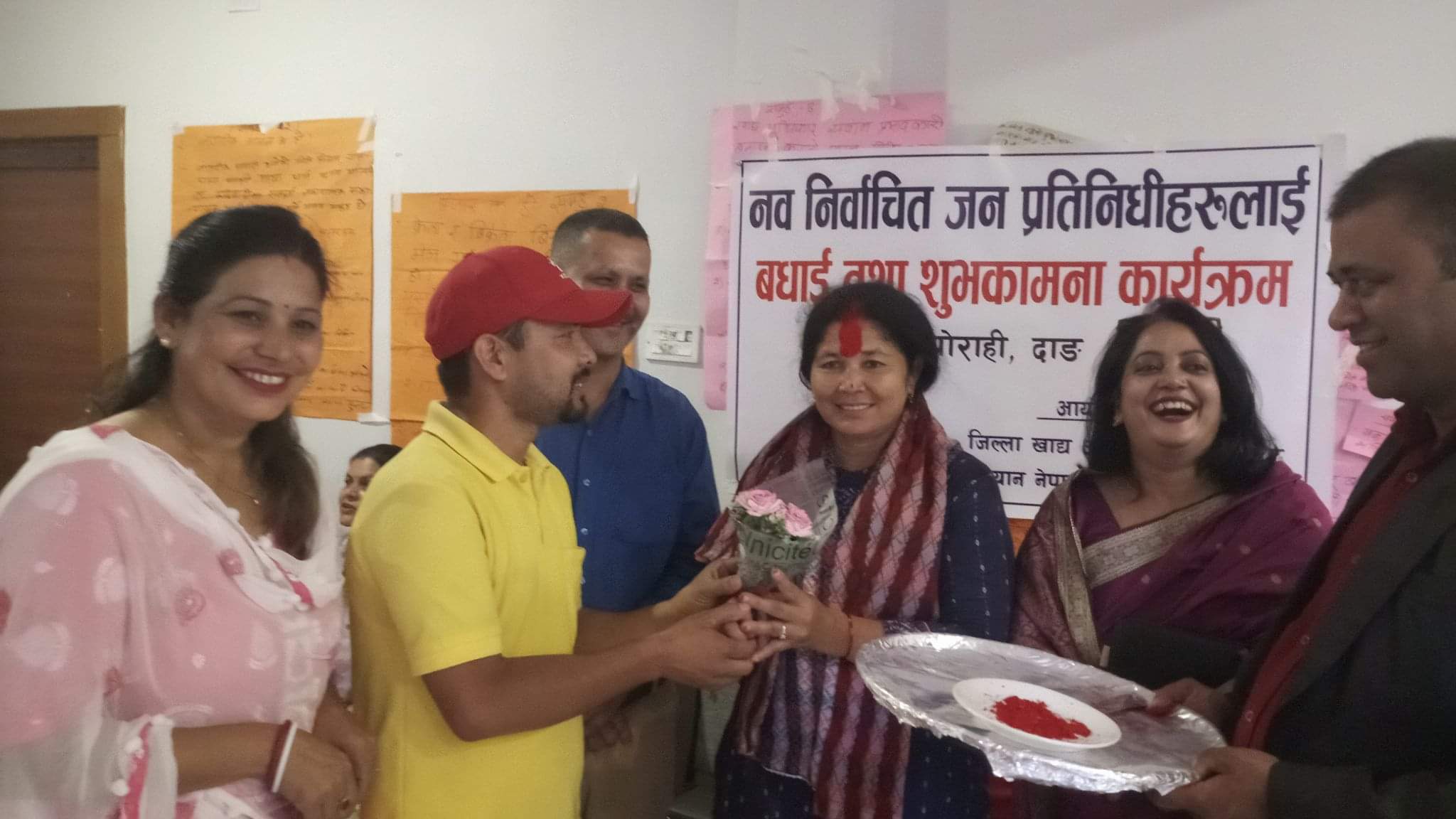 संजालकी अध्यक्ष समेत रहेकी डिसीलाई उपमेयरमा निर्वाचित भएपछि खाद्य अधिकार सन्जाल दाङ र फियान नेपालले संयुक्तमा कार्यक्रम आयोजना गरेर सम्मान तथा बधाई दिएको हो । कार्यक्रममा उपमेयर डिसीले सबैको साथ सहयोगमा काम गर्ने बताउनु भयो । सबै समुदायको काम गर्नका लागि आफुले भुमिका खेल्ने बताउनुभयो ।
