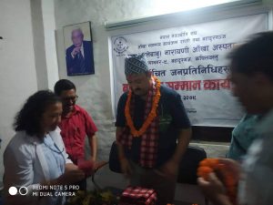 कार्यक्रमका अध्यक्ष सुरेन्द्र बहादुर खडकाले नव निर्वाचित जनप्रतिनिधी हरूलाई हार्दिक बधाई तथा सफल कार्यकालको शुभकामना दिदै कार्यक्रम समापनको घोषणा गरे । कार्यक्रम संचालन अस्पतालका सूचना अधिकारी बालाराम खडकाले गरे ।
