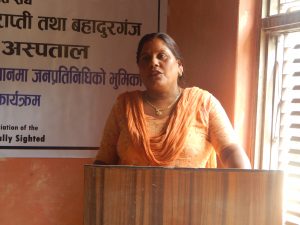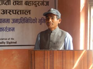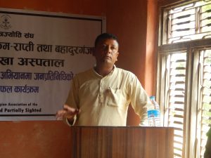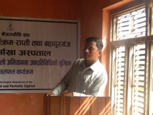 त्यस्तै दृष्टि विशेषज्ञ मदन चाैधरीले आँखा स्वास्थ्य सेवा सम्वन्धी आँखामा लाग्ने रोग,त्यसको रोकथाम र उपचार सम्वन्धी जानकारी दिनु भएको थियो भने कार्यक्रमको संचालन फिल्ड संयोजक टेकबहादुर चौधरीले गर्नु भएको थियो ।