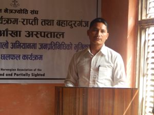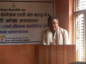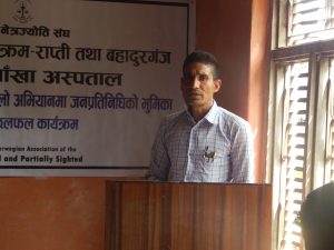 नेपाल नेत्रज्योति संघ दाङ शाखाका उपसभापति रेशम बहादुर खड्काको अध्यक्षता तथा राजपुर गाउँपालिका अध्यक्ष शरद कुमार बुढाथोकीको प्रमुख आतिथ्यतामा भएको छलफल कार्यक्रममा अध्यक्ष बुढाथोकीले मानव जीवनको एक महत्त्वपूर्ण अंग भनेको आँखा नै भएको हुँदा यस प्रति सम्पूर्ण निकाय गम्भीर हुनु पर्ने बताउनु भयो ।