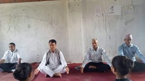 दाङ । राप्ती गाउँपालिकाका अध्यक्ष प्रकाश विष्टले मंगलबार विद्यार्थीहरूलाई योग अभ्यास गराएका छन् ।