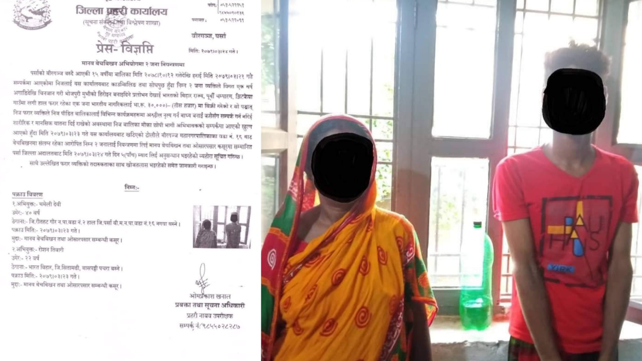 पर्सा । चलचित्रमा हिरोइन बनाइदिने प्रलोभन देखाएर १५ वर्षीय बालिकालाई भारत लगेर बेच्ने एक भारती यसहित दुईजनालाई पर्सा प्रहरीले पक्राउ गरेको छ ।