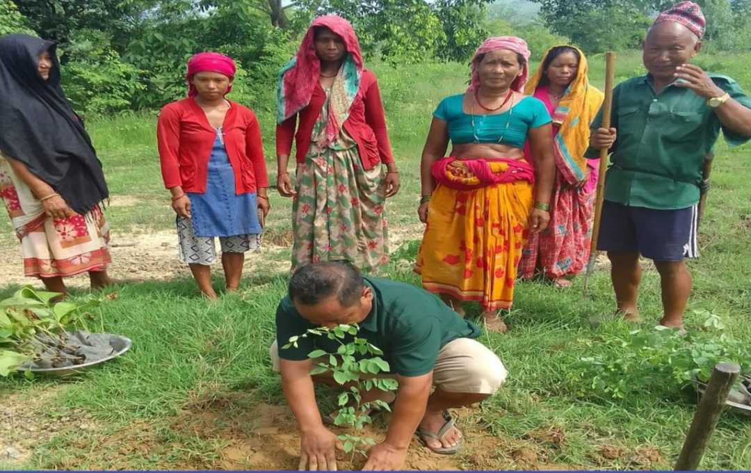 वन घुस्री स्थित कर्रि सामुदायिक वन उपभोक्ता समुहले वृक्षारोपण गरेको छ ।