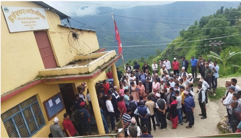 त्यस्तै दैलेख डुङ्गेश्वर गाउँपालिकामा तालाबन्दी भएको छ । करारमा कार्यरत कर्मचारीलाई हटाएको भन्दै गाउँपालिकामा तालाबन्दी गरिएको हो । जागिरबाट हटाइएका करारका कर्मचारी तथा राजनीतिक दलहरूले गाउँपालिकाको कार्यालयमा तालाबन्दी गरेको डुङ्गेश्वर गाउँपालिका–२ का वडाध्यक्ष यामबहादुर विष्टले बताए । कालीकोटको नरहरिनाथ गाउँपालिकामा पनि करार कर्मचारीले कार्यालयमा तालाबन्दी गर्दा कामकाज ठप्प भएको स्थानीय हरिबहादुर बिष्टले बताए ।