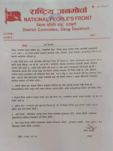 दाङ । राष्ट्रिय जनमोर्चा दाङले संगठन विस्तार तथा सुदृढिकरण अभियान चलाउने भएको छ । आगामी साउन १५ गतेदेखि असोज मसन्तासम्म संघीयताको खारेजी र राष्ट्रियताको रक्षाका लागि संगठन सुदृढ तथा बिस्तार अभियान संचालनको तयारी भएको राष्ट्रिय जनोकोचा दाङका अध्यक्ष गणेश आचार्यले जानकारी दिनु भयो ।