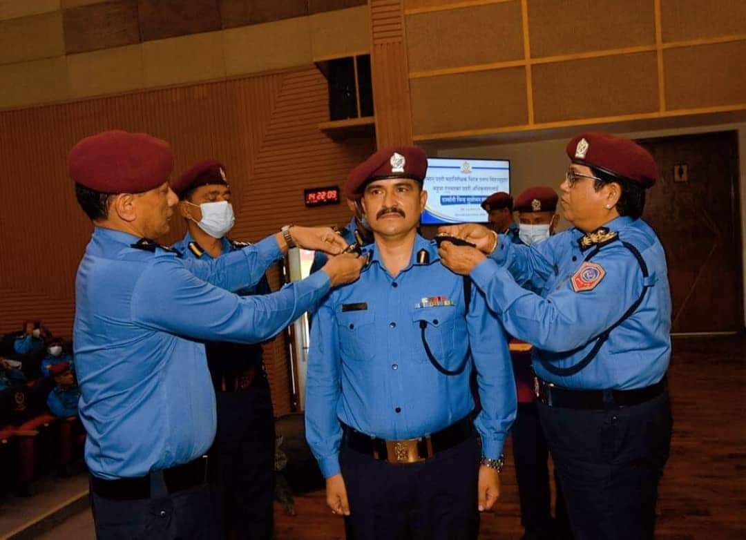 काठमाडौं । नेपाल सरकार मन्त्रीस्तर र सचिवस्तरको विभिन्न मितिको निर्णयले प्राविधिक तथा प्रशासनतर्फका विभिन्न पदमा पदोन्नति भएका ५९ जना प्रहरी अधिकृतहरूलाई प्रहरी महानिरीक्षक धिरज प्रताप सिंहले नेपाल प्रहरी प्रधान कार्यालयमा बुधबार आयोजित एक समारोहबीच दर्ज्यानी चिन्ह सुशोभन गर्नुभएको छ ।