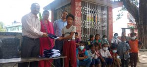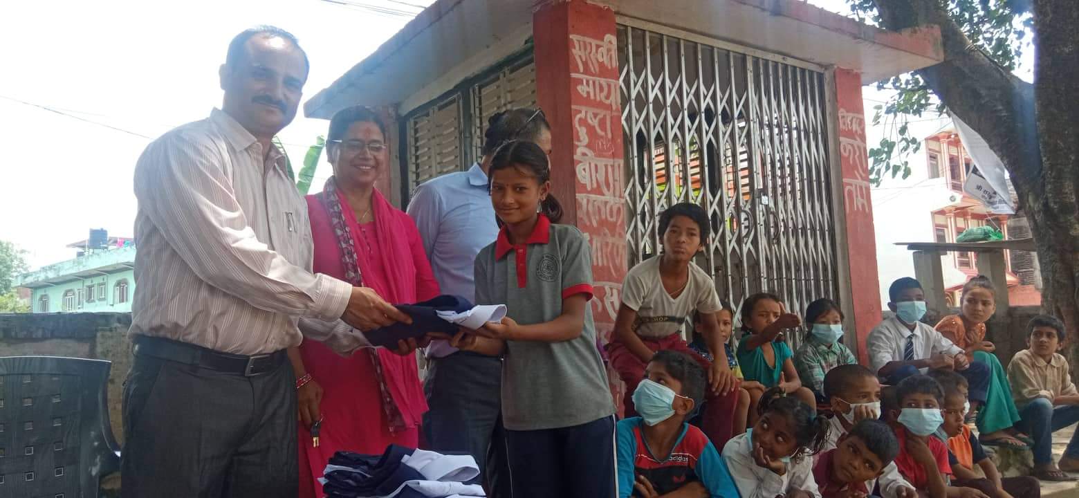 यसैबिच आज विद्यालयमा एक कार्यक्रम गरी विद्यार्थीलाई पोशाक वितरण गरिएको छ । वडा अध्यक्ष रमेशकुमार पाण्डे र विद्यालयका प्रधानाध्यापक बसन्ता पौडेलले सम्युक्त रुपमा विद्यार्थीलाई पोशाक प्रदान गरेर कार्यक्रमको शुभारम्भ गरिएको थियो । कार्यक्रममा वडा सदस्य माधव श्रेष्ठ,विद्यालयमा सहायक प्रधानाध्यापक प्रकाश डाँगी र दिपककुमार श्रेष्ठ लगायतकाले वडा कार्यालयले पोशाक नि:शुल्क रुपमा प्रदान गर्ने कार्यले विद्यार्थीहरुलाई सहयोग मिलेको बताउनु भएको थियो । सिलाएर तयार भइ आएका विद्यार्थीलाई पोशाक बितरण शुरु गरिएको र यो केहिदेखि जारी रहने विद्यालयले जनाएको छ ।