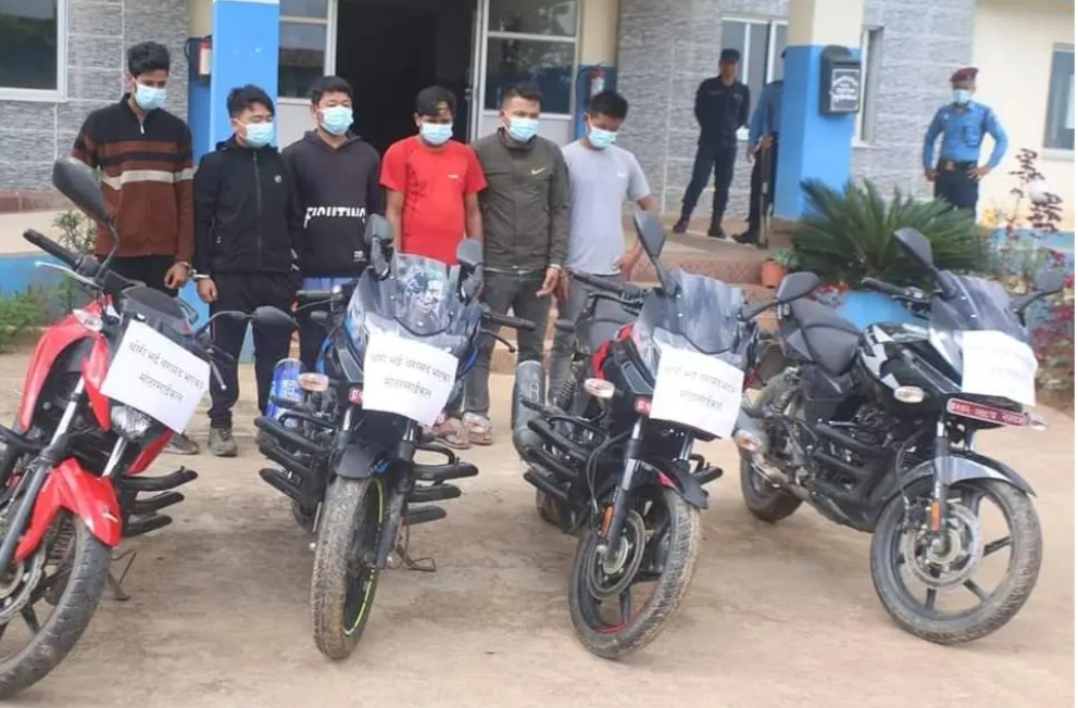 भोजपुर। जिल्ला प्रहरी कार्यालय भोजपुरले मोटरसाइकल चोरीमा संलग्न छ जनालाई पक्राउ गरेको छ । यहाँबाट हराएका चार मोटरसाइलसहित उनीहरूलाई प्रहरीले आज सार्वजनिक गरेको हो । रातको समयमा पार्किङ गरेको ठाउँबाट चोरी गरेर बाहिरका जिल्लामा लैजाने गिरोहलाई पक्राउ गर्न प्रहरी सफल भएको छ ।