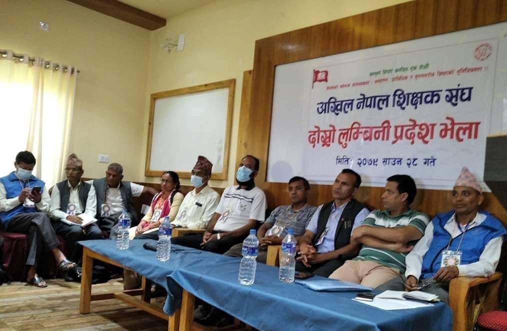 दाङको भालुवाङमा प्रदेश अध्यक्ष बालाराम पोख्रेलको अध्यक्षतामा शनिबार दोश्रो लुम्बिनी प्रदेश स्तरीय भेला सम्पन्न भएको हो । सो अवसरमा वक्ताहरुले नेपालको शिक्षा प्रणाली सुधारका लागि शिक्षा ऐनमा भएको व्यवस्थामा शिक्षकले विगतदेखि उठाउँदै आएका माग र समस्याका बारेमा राज्यले चासो नदिएको गुनासो गर्नुभयो ।