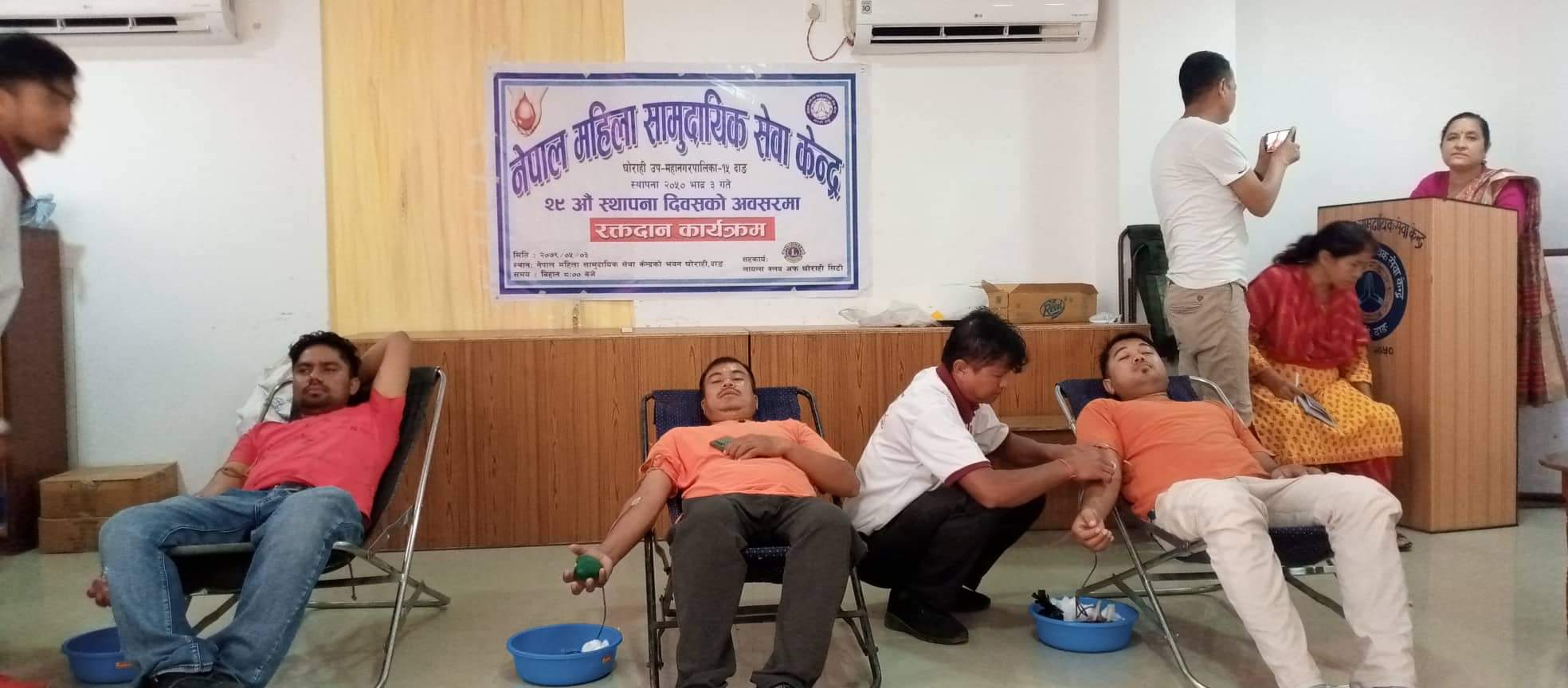 दाङ । नेपाल महिला सामुदायिक सेवा केन्द्रले संस्थाकाे २९ औं स्थापना दिवसकाे अवसरमा रक्तदान कार्यक्रम गरेकाे छ ।