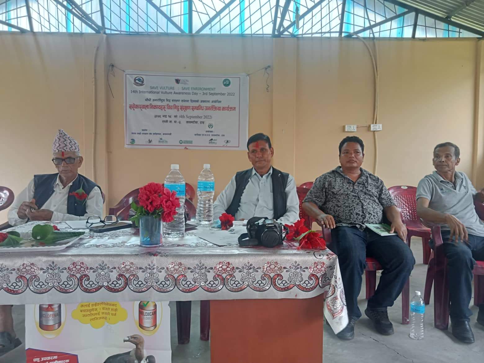 त्यस्तै पशु बृद्धाआश्रम तथा गिद्ध संरक्षण केन्द्रका संयोजक यामबहादुर रोकाको स्वागत मन्तव्यबाट शुरु भएको कार्यक्रमको सञ्चालन वन समूहकी सचिव शिला पौडेलले गरेकि थिइन् ।