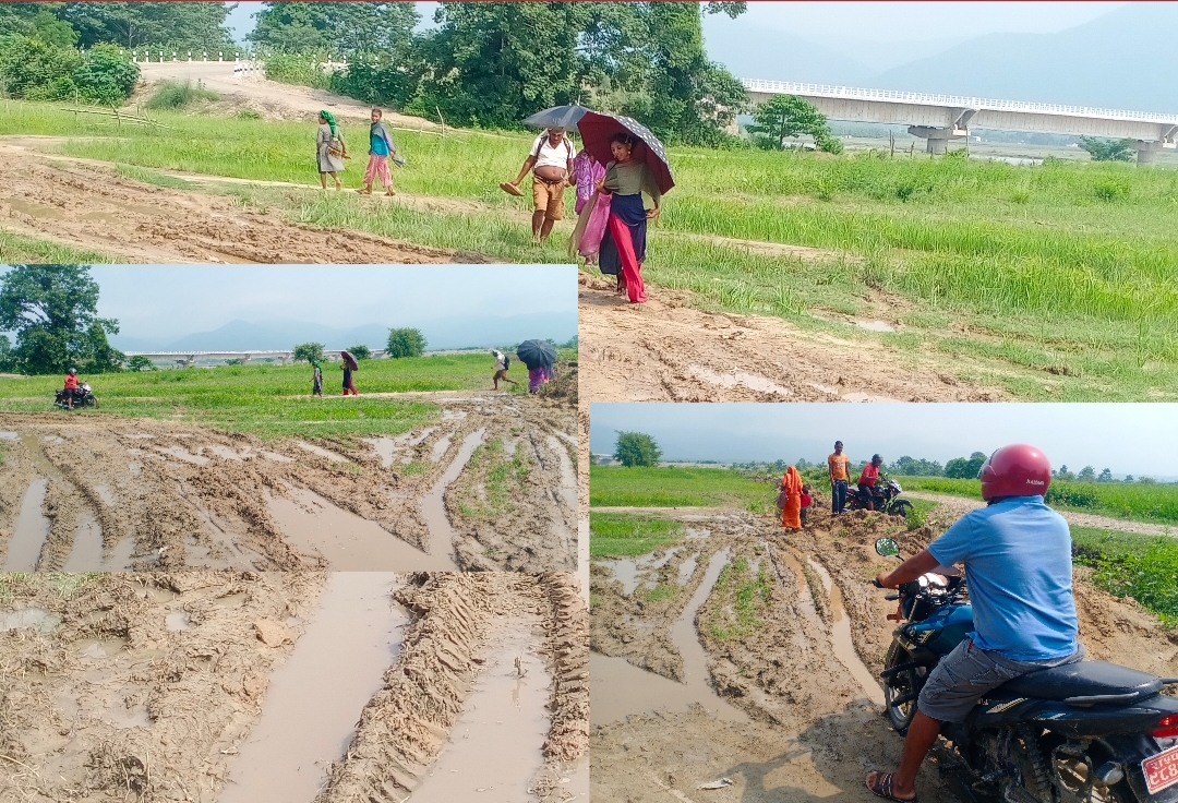 सतबरियादेखि कालिपुर,भैसहवा,खरदरिया लगायत अन्य स्थानहरुमा पुग्नको लागि राप्ती नदीमा बनेको नयाँ पुल पार गर्नुपर्छ । “पुल पारगरिसकेपछि” दायाँबायाँ कतैबाट निकास छैन । अगाडिबाट खेतको बारी छ । त्यहाँ बर्खाको कारण हिलाम्मे भएको छ । उक्त जग्गा राजपुर-३ भैसहवाका रामबहादुर यादवको हो । यादवको कुल एक बिघा ५ धुर जग्गा रहेको छ । पुल निर्माण भैसकेपछि अहिले उक्त जग्गाको पुर्व र उत्तर दिशाबाट यादवले १५ हजार खर्च गरेर नाली खनेका छन् । वरपरबाट हिड्न र सवारीसाधन हिडाल्न कुनै निकास छैन । निकास नभएर खेतको बीच भागबाट दैनिक आवतजावत गर्न नागरिकहरु हिलाम्मे बाटो हिड्नु परेकोछ ।