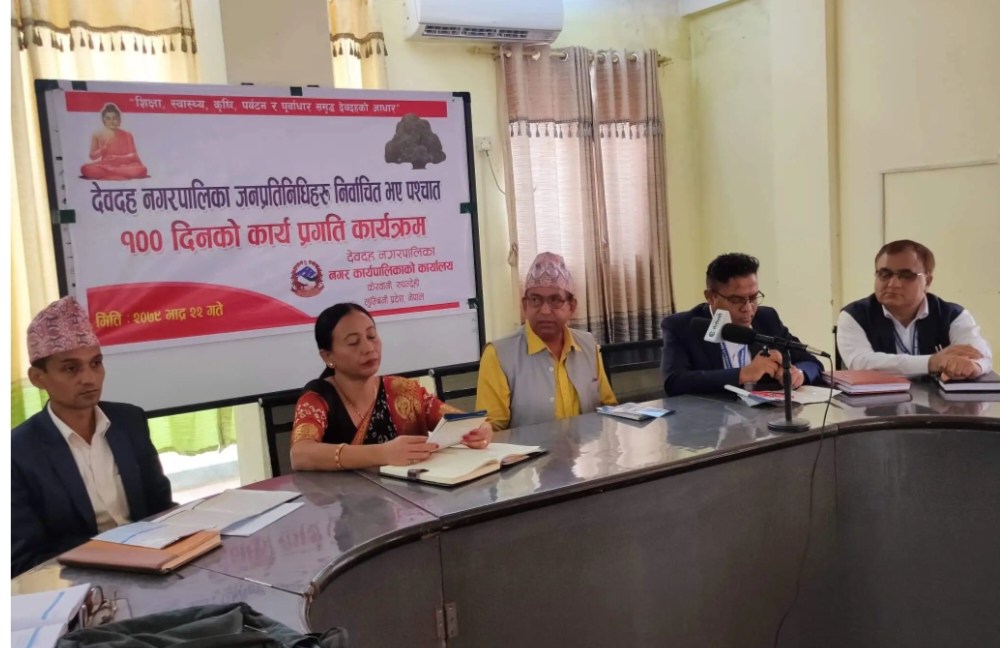बुटवल। रुपन्देहीको देवदह नगरपालिकाले नयाँ जनप्रतिनिधि आएपछिका १ सय दिनको उपलब्धि सार्वजनिक गरेको छ ।