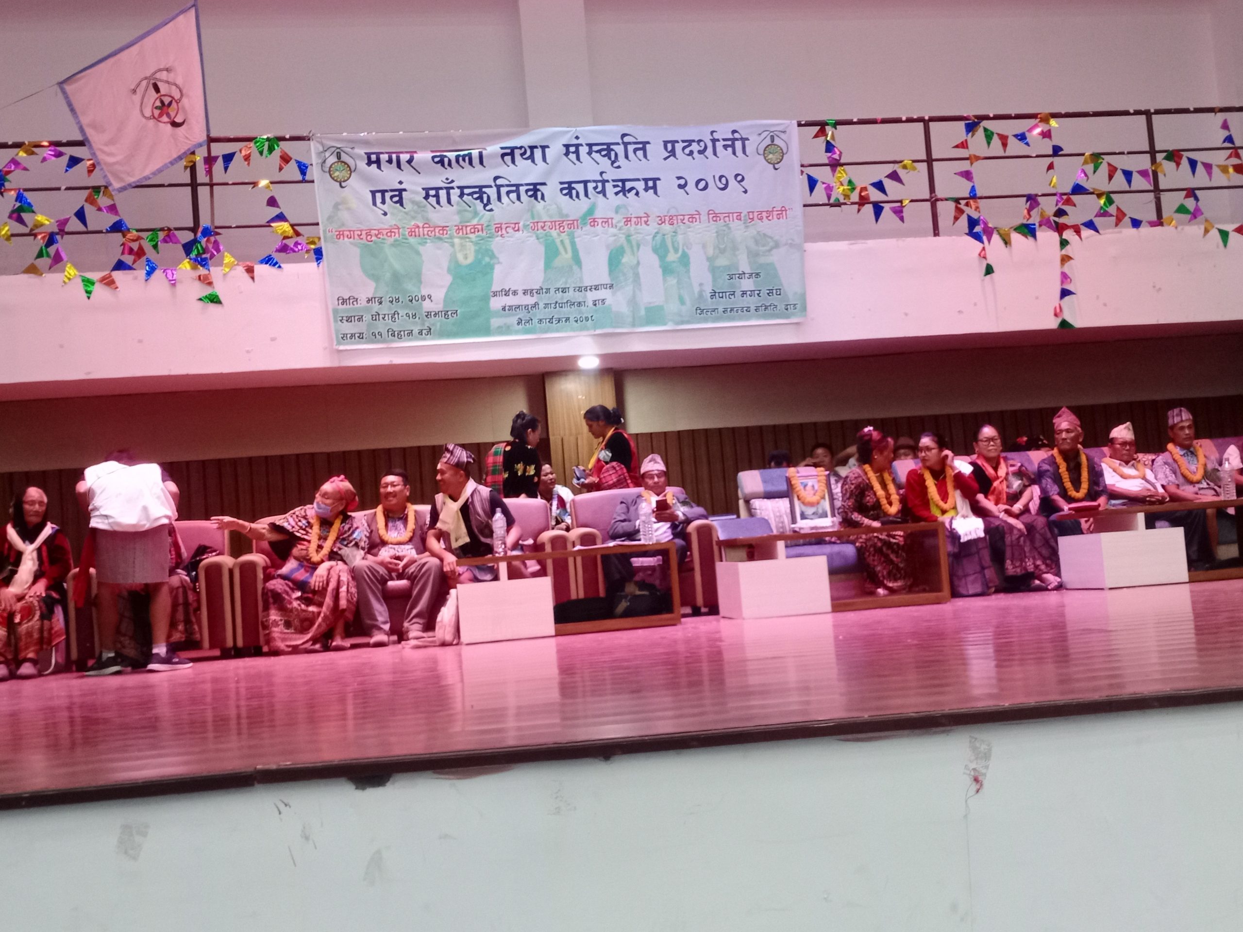 दाङ । मगर कला तथा संस्कृति प्रदर्शनी एवं सास्कृतिक कार्यक्रम २०७९ दाङको घोराहीमा शुक्रबारदेखि सुरु भएको छ । नेपाल मगर संघ जिल्ला समन्वय समिति दाङका अध्यक्ष खलु प्रसाद पुनको अध्यक्षता तथा लुम्बिनी प्रदेशसभा सदस्य तुलाराम घर्तीको प्रमुख आतिथ्यतामा तथा संघका केन्द्रीय वरिष्ठ उपाध्यक्ष तथा सुनछहरी गाउपालिकाका अध्यक्ष धनबहादुर पुनको विशिष्ठ आतिथ्यतामा कार्यक्रम गरिएको हो ।